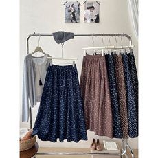 复古森系小碎花蛋糕半身裙女秋季配毛衣宽松大摆显瘦a字伞裙长裙