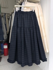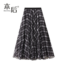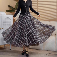 春秋格子半身裙女复古新款大码中长款a字裙大摆裙高腰显瘦长裙潮