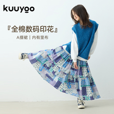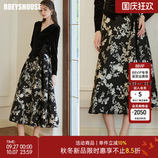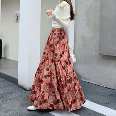 2025秋冬新款印花半身裙女百搭高腰a字裙中长款大摆显瘦大码长裙