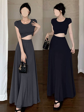 氛围感温柔纯欲初秋辣妹套装修身显瘦短上衣大摆半身长裙两件套