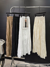 春秋新款轻奢褶皱半身裙女乱皱干枯肌理感大摆高个子加长A字长裙