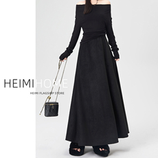 黑色大摆半身裙女2025秋冬季松紧腰a字长裙气质到脚踝麂皮绒长裙