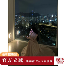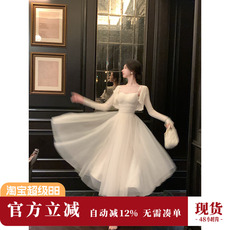 2025夏季长袖超仙旅游度假拍照真丝桑蚕丝连衣裙收腰显瘦大摆长裙