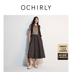 OCHIRLY欧时力 醋酸假两件针织连衣裙polo领大摆伞裙2025夏季新品