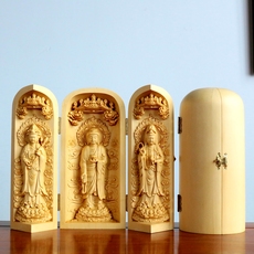桧木雕刻摆件佛像西方三圣娑婆三圣观音地藏王菩萨随身佛龛三开盒