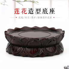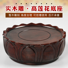 红木莲花座台供奉供佛实木圆形座台木质奇石香炉佛像观音菩萨底座