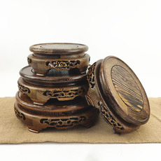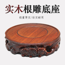 红木圆形茶壶鱼缸石头佛像花瓶花盆底座鸡翅木质奇石实木托架摆件