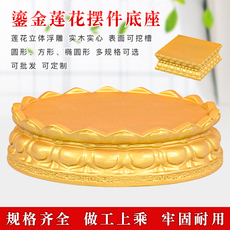 鎏金色实木圆形观音莲花底座供奉财神关公佛像加高摆件底座木托架