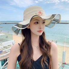 草帽女夏季防晒遮阳帽大沿沙滩海边大帽檐时尚度假出游太阳帽女式