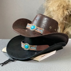 民族风皮革爵士帽子男女春秋季户外遮阳骑士帽大沿藏族西部牛仔