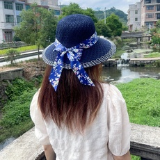 甬制旅游潮太阳帽出行帽子草帽遮阳帽大沿透气防晒新款飘带夏天韩