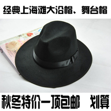 上海滩大沿舞台表演礼帽男士黑色毛呢英伦帽子女爵士大毡帽绅士帽