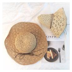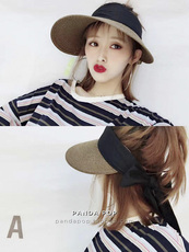 可折叠韩国代遮阳帽子防晒空顶帽檐草编蝴蝶结女夏季新款大沿百搭