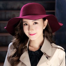 秋冬英伦风羊毛礼帽女复古时尚优雅大沿帽子女纯羊绒气质毡帽逛街