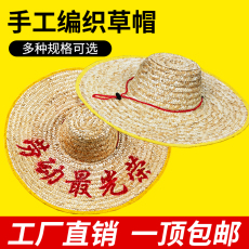 手工农民工麦秆草帽工地钓鱼户外大沿男女田园遮阳防晒草帽可印字