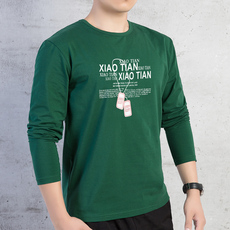 100%纯棉春秋男士长袖T恤圆领宽松大码秋衣男装上衣体恤打底衫