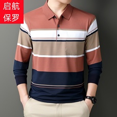 时尚纯棉长袖polo衫男加大码上衣肥佬休闲秋装条纹翻领体恤打底衫
