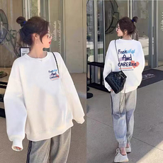即墨春秋薄款长袖圆领卫衣女新款宽松显瘦大码时尚洋气外套ins风