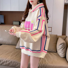 刺绣设计感彩色卫衣女oversize大码宽松闺蜜装外套ins潮春秋上衣