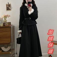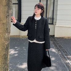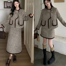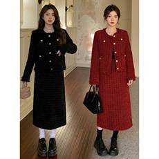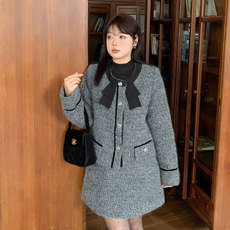 2025秋冬大码女装加厚小香风毛呢外套a字半身裙胖MM遮肉显瘦套装
