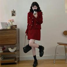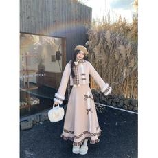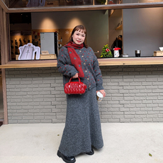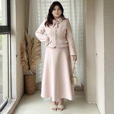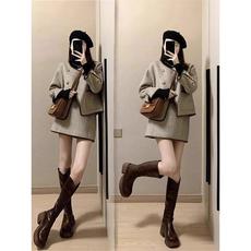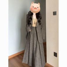 NAZ那子大码秋冬新款羊毛西装外套胖mm复古英伦洋气显瘦A字裙套装