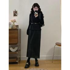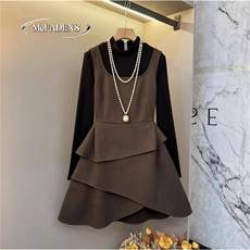 香港大码女装秋冬高级感套装胖mm气质显瘦打底衫减龄背带裙两件套