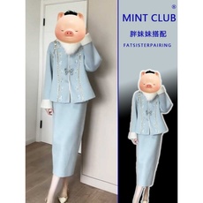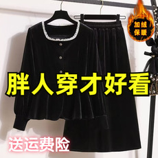 Milu家大码女装冬季气质小香风打底衫长款连衣裙胖mm显瘦两件套装