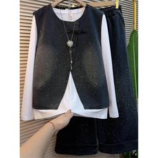 大码女装2025冬季新款牛仔马甲套装女三件套显瘦胖妹妹胖mm欧货