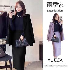 大码胖mm显瘦套装女秋冬大码女装气质披肩鱼尾裙半身裙遮肉三件套