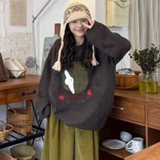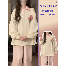 冬季时尚拼色趣味卡通小众设计感胖mm两件套宽松休闲显瘦大码套装