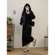 大码秋冬时尚洋气穿搭配一整套装女胖mm显瘦遮肉半身裙卫衣两件套