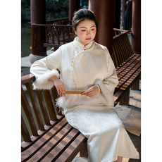 大码汉服女200斤胖MM妆花马面裙明制方领毛呢刺绣套装秋冬显瘦款