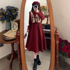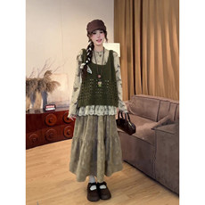 2025冬季新款时髦国风气质套装胖MM大码显瘦中长连衣裙马甲两件套