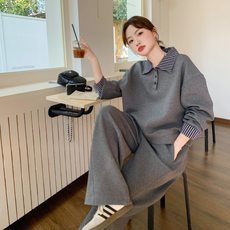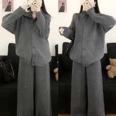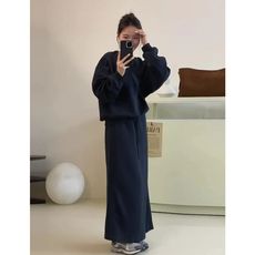 实拍大码女装秋冬胖MM时尚加厚毛衣套装松弛感遮肚显瘦针织两件套