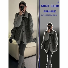 大码女装胖MM法式千金风毛呢外套+半身裙2025冬季气质显瘦套装