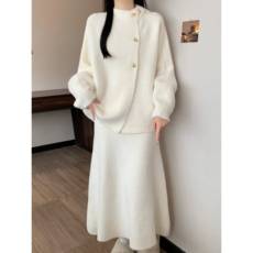 大码女装轻奢高级感套装冬季小香风外套胖MM遮肚显瘦半身裙两件套