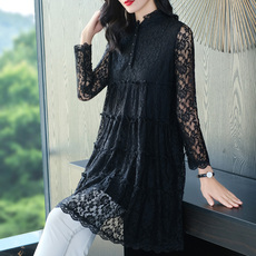 蕾丝打底衫女长袖早春秋季中长款内搭小衫加大码女装高档洋气上衣