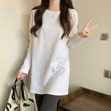 中长款纯棉t恤创意长袖宽松大码女装春秋冬季新款圆领内搭打底衫