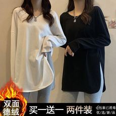 单/两件装 大码女装200斤德绒打底衫女秋冬长袖t恤宽松中长款上衣