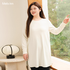 加绒白色打底衫女内搭大码女装宽松慵懒风中长款上衣女遮屁股洋气