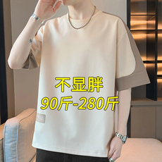 短袖t恤男夏季薄款潮牌百搭宽松加肥加大码圆领半袖体恤衣服男装