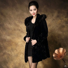 女装大码胖MM160斤穿中长款加厚加绒环保毛皮草外套洋气国风皮衣