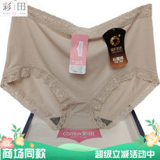 彩田内裤女莫代尔棉提花秋季高腰透气蕾丝边茶多酚抗菌大码三角裤