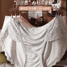 日系大码抗菌内裤女 高腰无痕蕾丝边甜美少女胖MM200斤抗菌透气