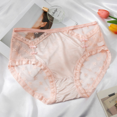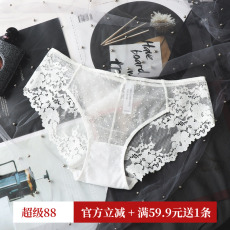 中高腰大码蕾丝网纱内裤女性感透明包臀超薄款性惑平角情调胖内衣