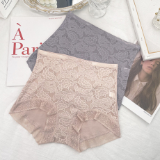 高腰收腹女生蕾丝无痕包臀纯棉抗菌中腰女士性感大码冰丝内裤女