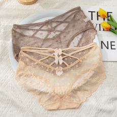 少女蝴蝶结内裤蕾丝性感镂空爱心网纱新款大码三角裤夏季2025新款
