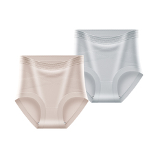 [2条]三枪内裤女款蕾丝60支高腰收腹10A级抗菌大码三角裤防夹臀