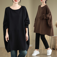 日系千家新款中长款圆领长袖卫衣休闲宽松有大码春秋女装上衣S73