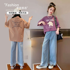 爵士舞女童夏季套装2025新款洋气时髦儿童运动夏装宽松大童阔腿裤